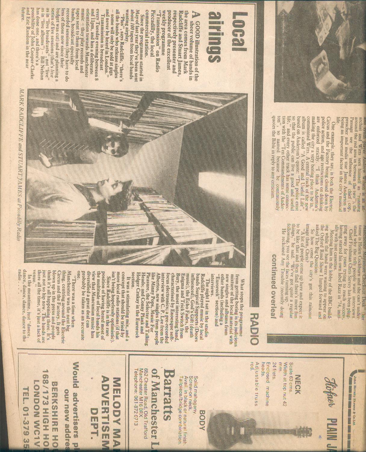 Mark Radcliffe and Stuart James tell Melody Maker about Transmission